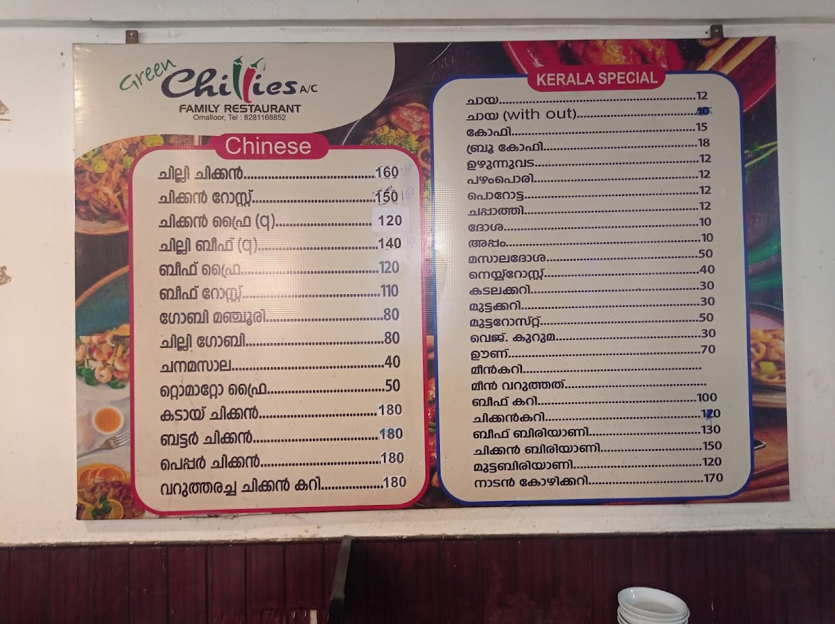 Welcome to Green Chillies Family Restaurant, a culinary gem nestled in the heart of Omalloor, Pathanamthitta, Kerala. This bustling eatery is renowned for its authentic local flavors, drawing patrons with its delicious specialties such as porotta, appam, and an array of delectable curries.